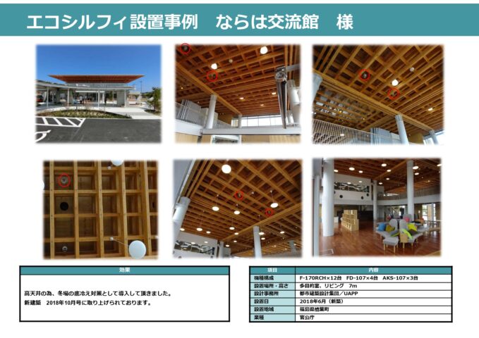 高天井の為、冬場の底冷え対策として導入して頂きました。