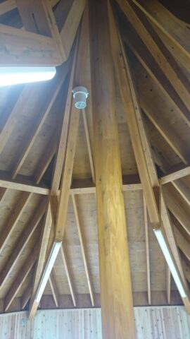 高天井の為、空調効率を上げる目的で採用頂きました。