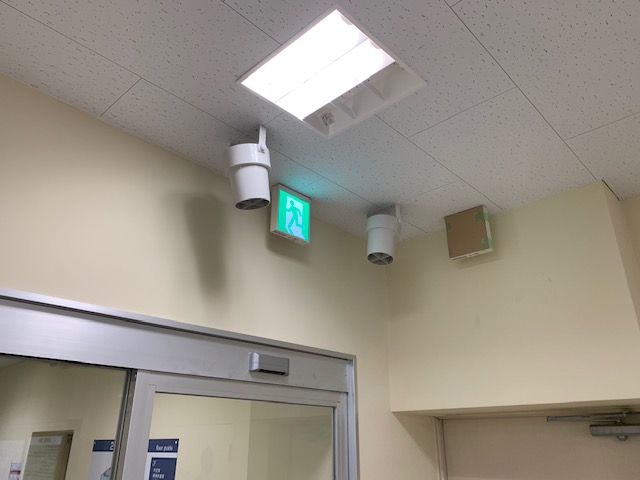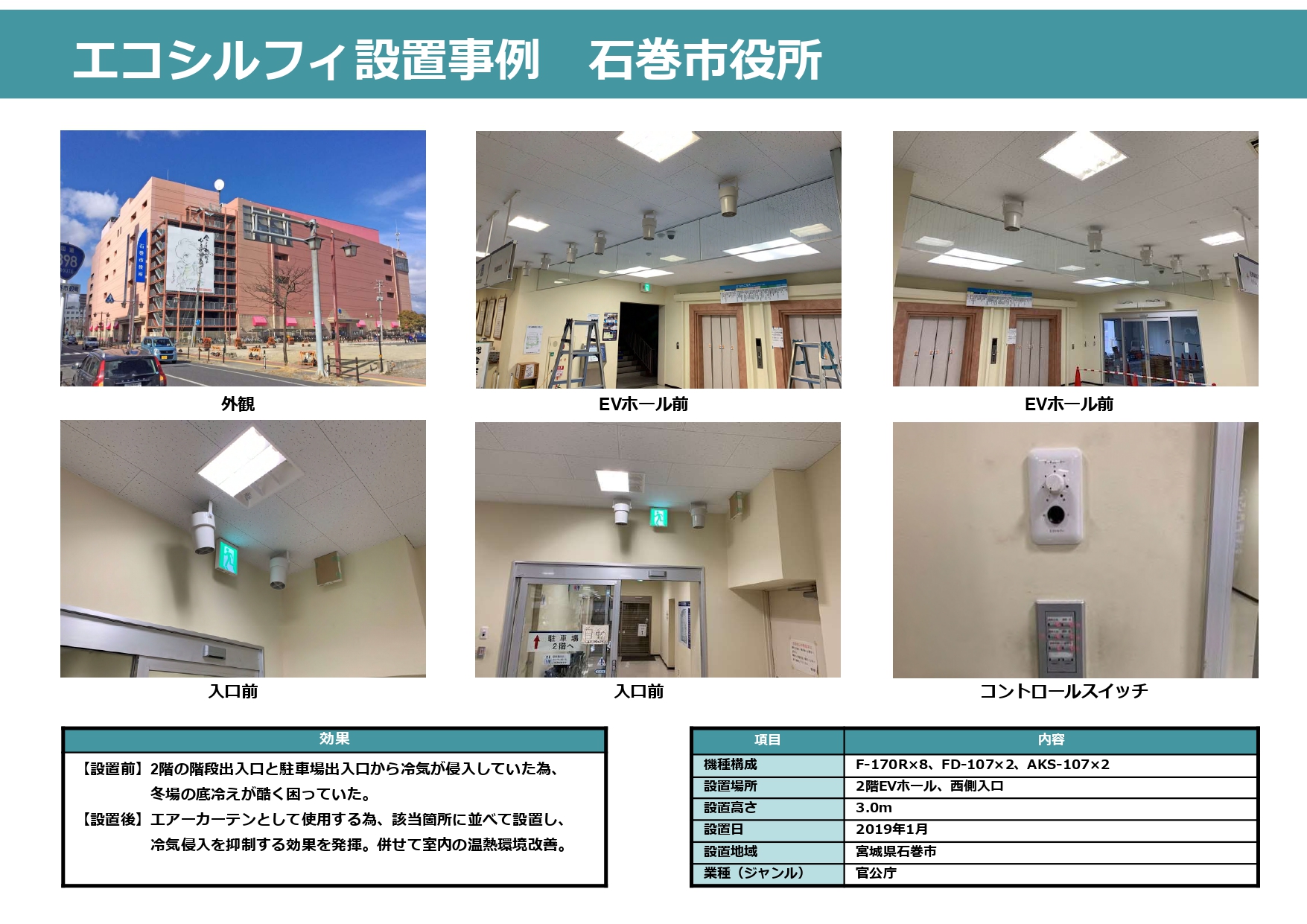 エアーカーテンとして冷気侵入を抑制する為に導入。併せて室内の温熱環境改善。